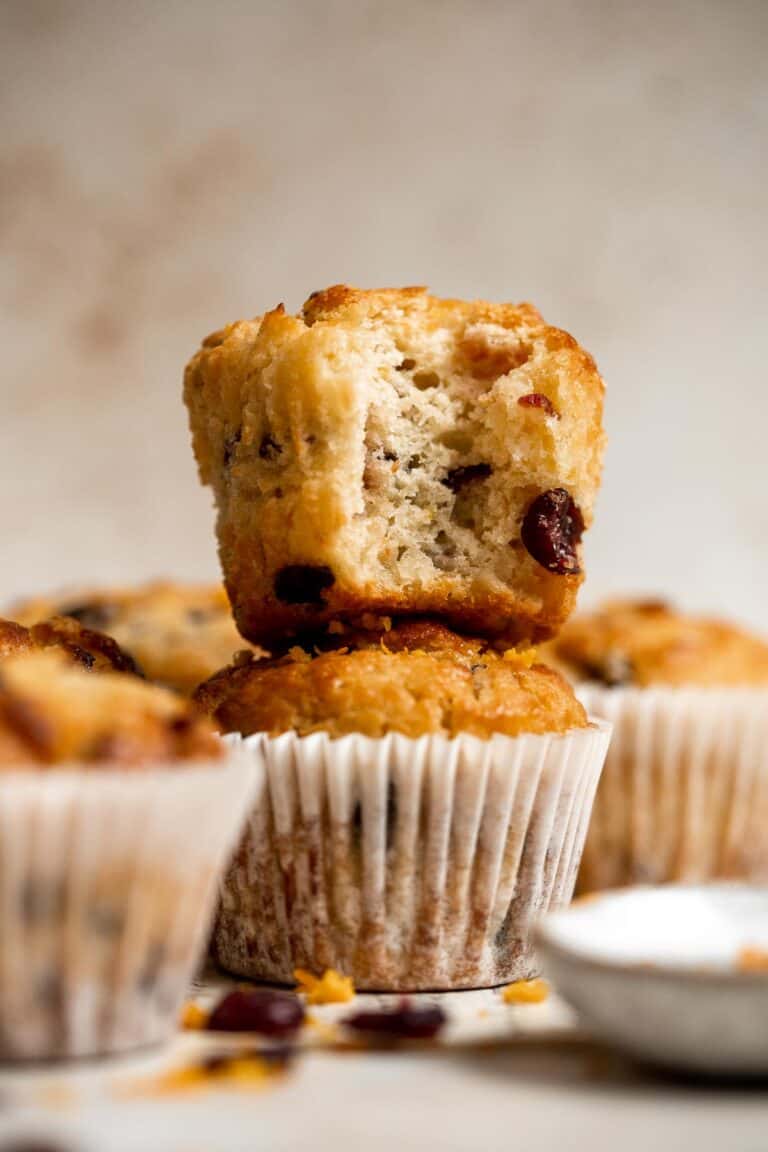 Cranberry Orange Muffins are soft, fluffy, buttery, and moist. Loaded with tart cranberries and orange, they are a delicious snack, breakfast, or dessert.