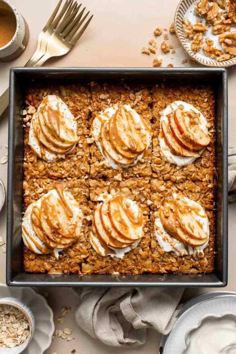 - Serve baked oatmeal with a side of Greek yogurt and maple syrup.