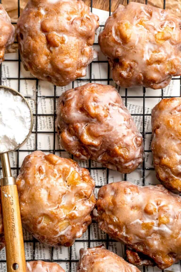 Old fashioned apple fritters are crispy, fluffy, and packed with juicy apples, warm spices, and a sweet glaze. A bakery-style treat at home!