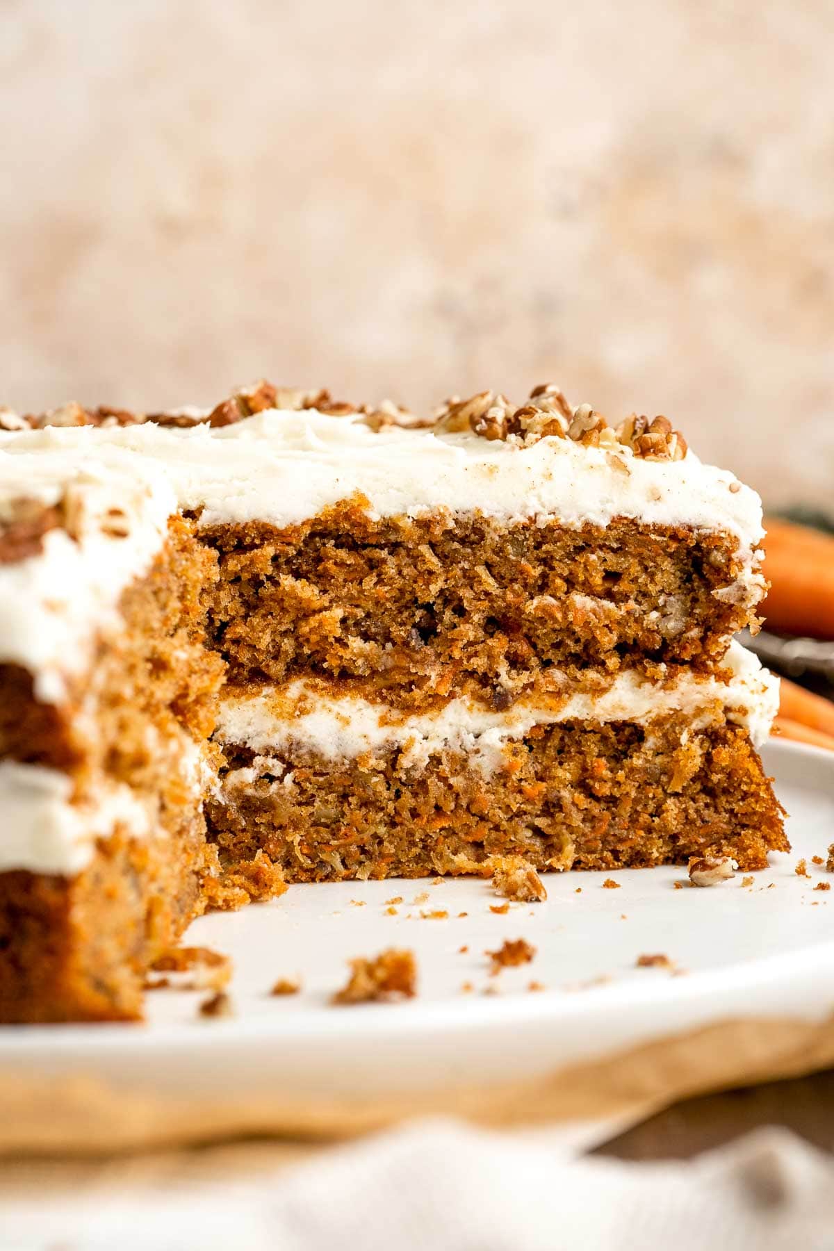 - Incredibly moist crumb. Thanks to a combination of shredded carrots, crushed pineapple, oil, and sour cream, this cake stays perfectly moist for days. Every bite is tender, rich, and melt-in-your-mouth delicious, with just the right amount of density. It's everything you want from a classic carrot cake: rich but never heavy.