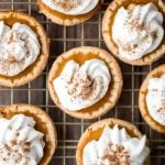 Small batch mini pumpkin pies with a flaky crust, delicious pumpkin pie filling, and cinnamon whipped cream, are perfect for a small Thanksgiving crowd.