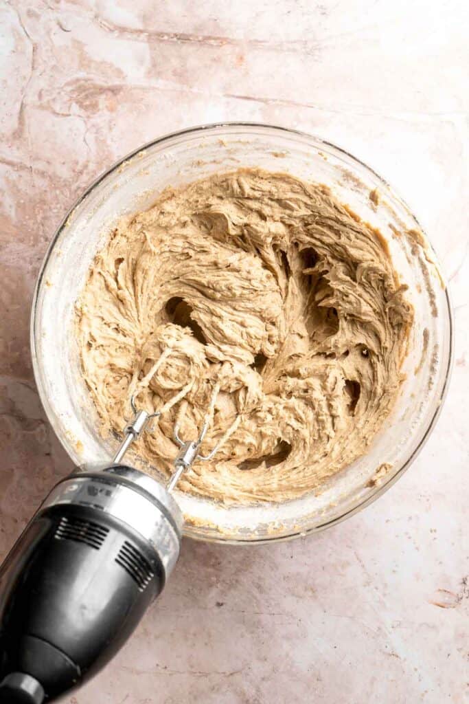 - Combine wet ingredients. In a large mixing bowl, beat together the butter, brown sugar, and orange zest, with an electric hand mixer for 4-5 minutes, or until very fluffy and pale. Beat in the eggs, incorporating each egg before adding the next, then continue to beat for an additional minute after all of the eggs have been added.