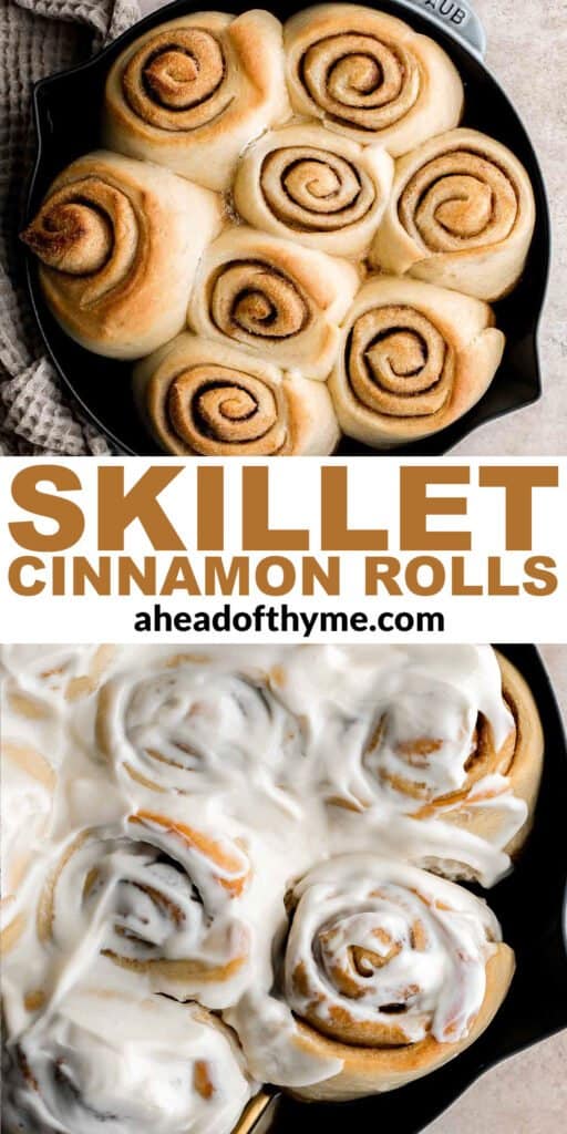 Make ahead instructions: You can prepare these skillet cinnamon rolls up to a day in advance, following the recipe up until the second rise. Then, allow the rolls to rise slowly in the refrigerator overnight and bake it the next day in a preheated oven for fresh cinnamon rolls in the morning.