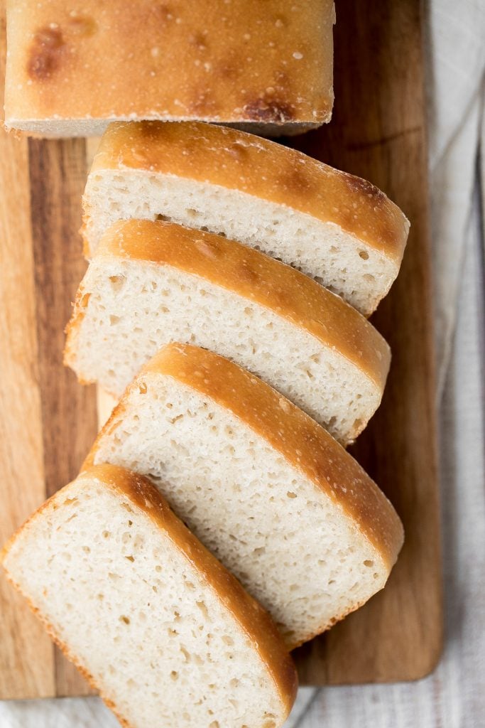 Sourdough sandwich bread is chewy with the perfect air holes inside, and has a crispy crust with a delicious signature sourdough taste.